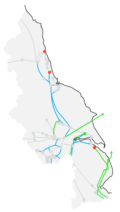 This network region reflects the geographical area of the North East, but includes some network from parts of neighbouring regions.